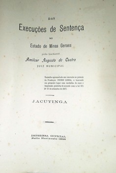 Das Execuções De Sentença. CASTRO, Amilcar Augusto de. Belo Horizonte: Imprensa Oficial, 1928, 325 P. REIMPRESSÃO INTELLECTUSSaiba Mais